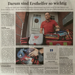 Um den Bereich des Schutzes von Menschen komplett abbilden zu können, kam 2017 auch der Bereich der "Ersten Hilfe" mit dazu. Begeistert von dem effektiven US-Konzept "STOP THE BLEED®" zur Behandlung lebensbedrohlicher Blutungen, holten wir dieses Konzept nach Deutschland. Jetzt gehört STOP THE BLEED® als fester Bestandteil zu all unseren Notfalltrainings im Bereich der Taktischen Medizin. Durch das Inkrafttreten der DSGVO und der sich dadurch auch für Behörden maßgebliche Änderungen schulten wir übrigens 2018 alle Bezirksämter in Hamburg. 2022 erfolgte die Umwandlung des Gewerbebetriebs in eine GmbH. Regelmäßig üben und trainieren wir mit Einsatzkräften von Polizei, Militär, Rettungs- und Sicherheitsdiensten und nehmen an nationalen und internationalen Fortbildungen teil. Die Nachweise zeigen wir Ihnen sehr gern bei einem persönlichen Gespräch. Wir sind offizieller Ausbildungspartner des US Verteidigungsministeriums für den Bereich STOP THE BLEED® in Deutschland und anerkannter Bildungspartner des Co-TECC (Committee for Tactical Emergency Casualty Care) für Taktische Medizin. ![]() ![]() Unser Team![]() Auch die effektive Versorgung von verletzten Hunden (K9-TECC) interessierte mich als Hundeführer natürlich auch schon damals brennend. Bei einer Deutschen Hilfsorganisation lies ich mich in meiner Freizeit zum Sanitäter ausbilden. Anschließend wurde ich Erste Hilfe Ausbilder und erhielt die DGUV-Lehrberechtigungen für "Erste Hilfe" und "Erste Hilfe am Kind". Auch erhielt ich die Lehrberechtigungen für die "Helfergrundausbildung Einsatz (HGA Einsatz)" und "Helfergrundausbildung Technik und Sicherheit (HGA TeSi)". Ich bin geprüfter ACLS Provider (Adcanced Cardiac Life Supporter), PALS Provider (Pediatric Adcanced Life Supporter) und K9 Tactical Casualty Care for Human Provider. Neben der IHK-Ausbildereignung nach AEVO besitze ich zusätzlich die Fitnesstrainer C-Lizenz. Ich bin kampfkunstbegeistert und trainiere seit 1986 Wing Tsun und seit 2022 zusätzlich Shotokan Karate. Bei STOP THE BLEED® bin ich als Instructor und Ambassador registriert. Aktiv unterstütze ich als freiwilliger Ersthelfer die Projekte "Saving Life" (der Nachfolger von "Meine Stadt rettet") in gesamt Schleswig-Holstein und "KatRetter" in Berlin. Hier werde ich bei Notfällen in meiner aktuellen Umgebung von den Leitstellen alarmiert, um die Erstversorgung bei medizinischen Notfällen bis zum Eintreffen des Rettungsdienstes zu übernehmen. ![]() In den Kursen unterstütze ich tatkräftig als STOP THE BLEED® Assistant und kümmere mich ebenfalls im Back-Office um die Seminarplanung und -durchführung. Bei STOP THE BLEED® bin ich als Ambassador registriert. Ich freue mich darauf, möglichst vielen Menschen das STOP THE BLEED® Programm näher bringen zu dürfen und so dazu beitragen zu können, dass Menschenleben gerettet werden. ![]() Schon während meiner Lehrzeit habe ich erlebt, dass auch in KFZ-Werkstätten schwere Unfälle zum Beispiel durch gebrochene oder nicht richtig sitzende Federspanner vorkommen. Als KFZ-Meister trägt man eine hohe Verantwortung seinen Mitarbeitenden und Auszubildenden gegenüber. Das gilt insbesondere im Bereich Erste Hilfe. Mittlerweile schraube ich nicht mehr aktiv an Fahrzeugen rum, sondern kümmere mich um Immobilienverwaltung und -projektentwicklung. Auch hier gibt es zum Beispiel auf Baustellen teilweise schwere Unfälle. Daher ist es mir eine Herzensangelegenheit, das STOP THE BLEED® Programm in Deutschland tatkräftig zu fördern. Bei STOP THE BLEED® bin ich als Instructor und Ambassador registriert. ![]() Das STOP THE BLEED® Konzept ist meiner Meinung nach in der heutigen Zeit jedem zu empfehlen; nicht nur Rettungs- und Ordnungskräften. Bei Bahnfahrten habe auch ich immer mein IFAK mit Tourniquet und Bandagen griffbereit. Natürlich stets in der Hoffnung, dass sich überhaupt kein Notfall ereignet. Presseberichte über uns zum Thema Ersthelfer 16.10.2019 - der Reporter (für Eutin und Malente)Nothelfer in der Nachbarschaft: "Ich will einfach helfen können" Andreas Ebbersmeyer ist als ehrenamtlicher Sanitäter im Notfall immer einsatzbereit Fissau (ed). Nach dem Erste Hilfe-Kurs für den Führerschein ist für die meisten Menschen Schluss - kaum jemand frischt seine Kenntnisse regelmäßig auf. Und wie das so ist mit Dingen, bei denen man aus der Übung ist: Man wird unsicher, hat Angst, etwas falsch zu machen, und hofft einfach, dass schon nichts passiert. Wenn dann doch in unmittelbarer Nähe jemand Hilfe braucht, wird es schwierig. (...) Den ganzen Bericht (auf Seite 10) finden Sie online unter: https://www.archiv.der-reporter.de/eutin/2019/eutin42.pdf 04.10.2019 - Wochenspiegel Lübeck + OstholsteinJeder sollte Retter sein, weil jede Sekunde zählt Es gibt Notfälle, da zählen Sekunden: Bei einem Herz-Kreislauf-Stillstand ist schnelle Hilfe überlebenswichtig. "Viel zu viele Menschen verlassen sich auf andere oder die bezahlten Rettungskräfte. Als Ersthelfer könnten sie aber Schlimmeres vermeiden", sagt Andreas Ebbersmeyer aus Eutin. Der 48-jährige Datenschutzexperte weiß, was im Fall eines Falles zu tun ist: Er hat eine Sanitäterausbildung gemacht, sich privat einen Defibrillator angeschafft und sich für die App "Meine Stadt rettet" registrieren lassen. (...) Den ganzen Bericht finden Sie online unter: https://www.wochenspiegel-online.de/index.php/2019/10/04/jeder-sollte-retter-sein-weil-jede-sekunde-zaehlt/ 20.09.2019 - LN OnlineEutiner wirbt um Mitstreiter: So wichtig sind Ersthelfer Im Notfall zählt jede Sekunde: Andreas Ebbersmeyer wirbt für den Besuch von Erste-Hilfe-Kursen, damit jeder helfen kann. Mit der App "Meine Stadt rettet" waren Ersthelfer 62 Mal schon vor dem Rettungsdienst vor Ort. Ostholstein/Eutin - 50.000 Menschen erleiden deutschlandweit außerhalb eines Krankenhauses einen Herzkreislaufstillstand. In solchen Fällen geht es um Sekunden. Denn schon nach drei bis fünf Minuten wird das Gehirn des Betroffenen dauerhaf